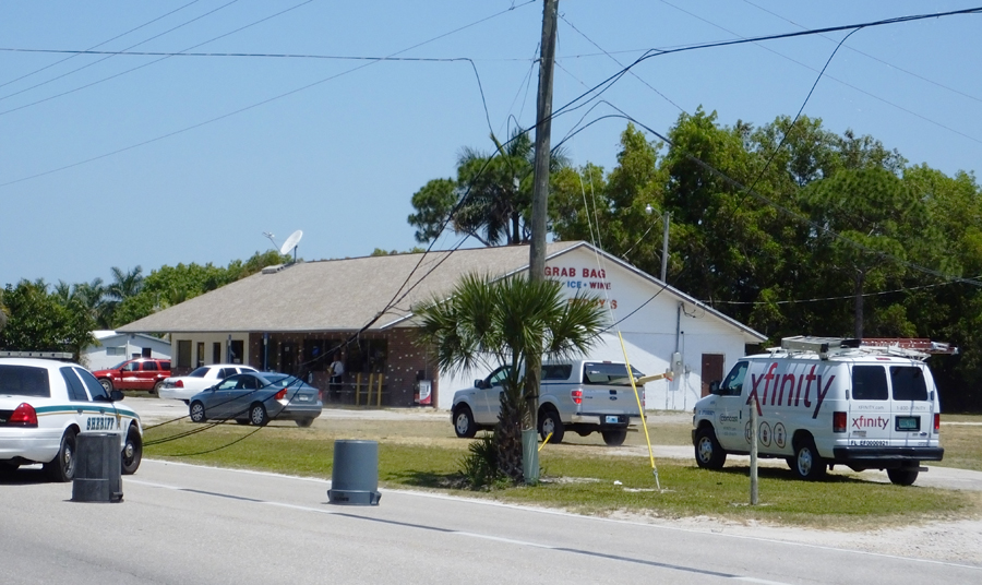 The Lee County Sheriff’s Department directed vehicles around the downed lines stretched across Stringfellow and down Pomegranate.