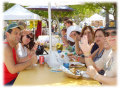 The weather started out being very cloudy and a little cooler, but the people still came, by 11:30 am it turned out to be another beautiful day in paradise for all who attend ClamJam. Bluegrass Central started their set off with some great original songs. Music playing, food cooking, and vendors ready to showcase their wares. The people kept coming and in spite of the cool morning temperature. It crowds didn’t let up until 6:30 PM that night. There were over 125 arts and craft vendors from home made soaps to hot sauces, spices, fine arts, beef jerky, hats, t-shirts, insurance agents, dentist, jewelry, local fresh veggies and fruit and so much more…..something for everyone. After Bluegrass Central performed, the sound crew set up for Brother Love Three, a huge crowd pleaser. At lunch time, the clams were hot and ready and the visitors started lining up at the food vendor’s spots for some great local seafood. Hundreds of visitors sat on the concrete picnic tables, which surround the courtyard of the park, a beautiful area with large shade trees. They ate local seafood, right off the boats of our local fishermen and other great foods being served by our many food vendors, drank some cold adult beverages, being served by the staff of the German-American Social Club and enjoyed some kick-butt rock and roll. The sound crew was getting the stage ready for 24 Carat, a very popular rock band in the area. In between the bands playing, the crowds began to gather around the stage where Captain Terry Fisher from Fish Face Charter gave a boating and fishing lecture. 100’s were interested in what Captain Fisher had to say and where his secret fishing holes were and what fishing gear was required to get the big one.