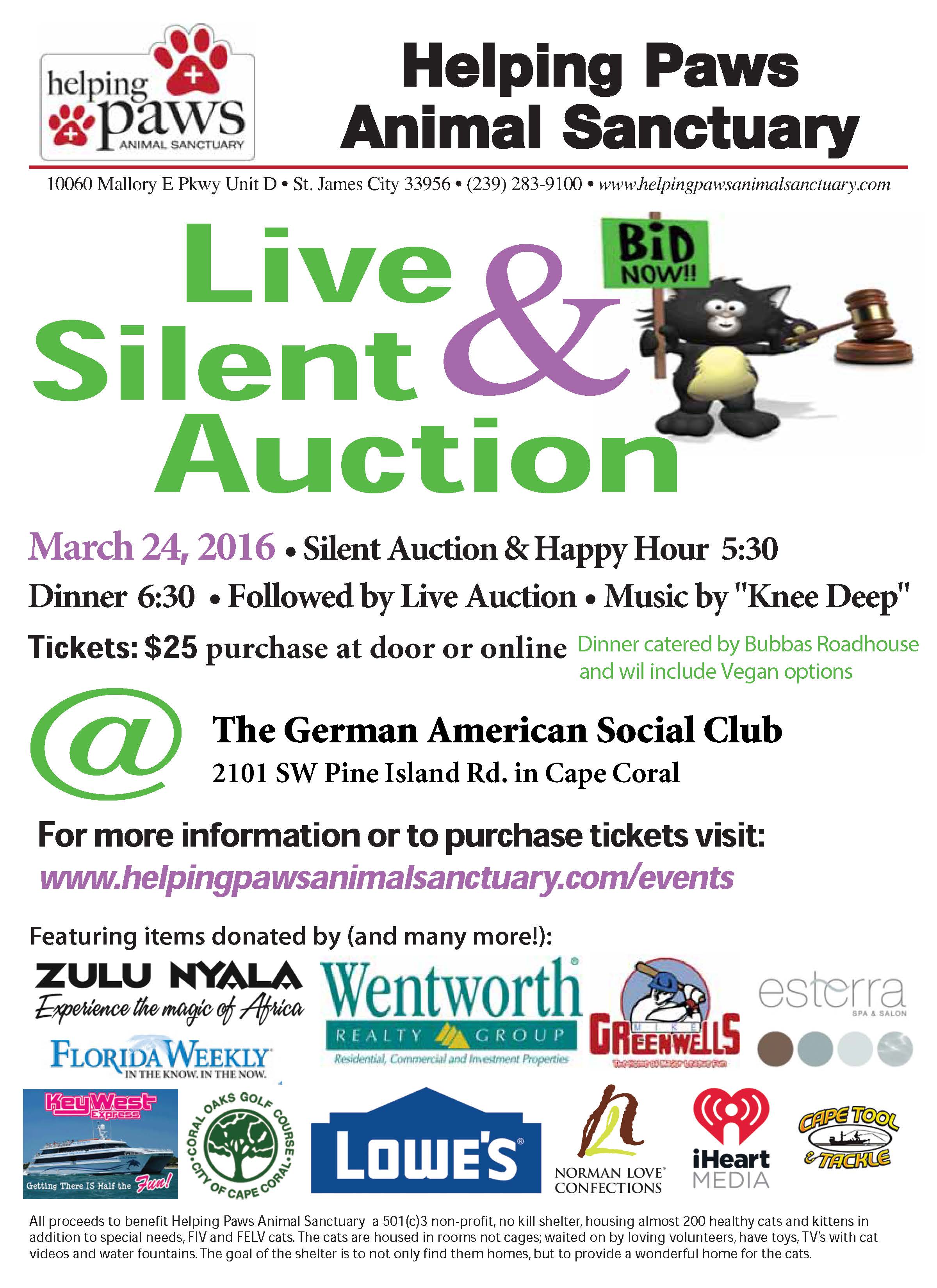Helping Paws Animal Sanctuary is planning its third annual Live and Silent Auction Thursday, March 24.